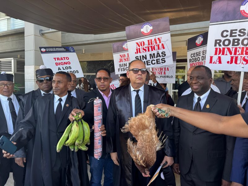 Los abogados en ocasión de conmemorarse el día del Poder Judicial, marcharon con una mano de plátano, un salami y una gallina en señal de la retórica realidad del pueblo dominicano, resaltando casos de robo de un conejo, de gallinas, de un salami o de una mano de plátano, a los que se le impone altas condenas, en contraste con los ricos y criminalidad de cuello blanco de poderosos que, según la entidad, gozan de gran impunidad.